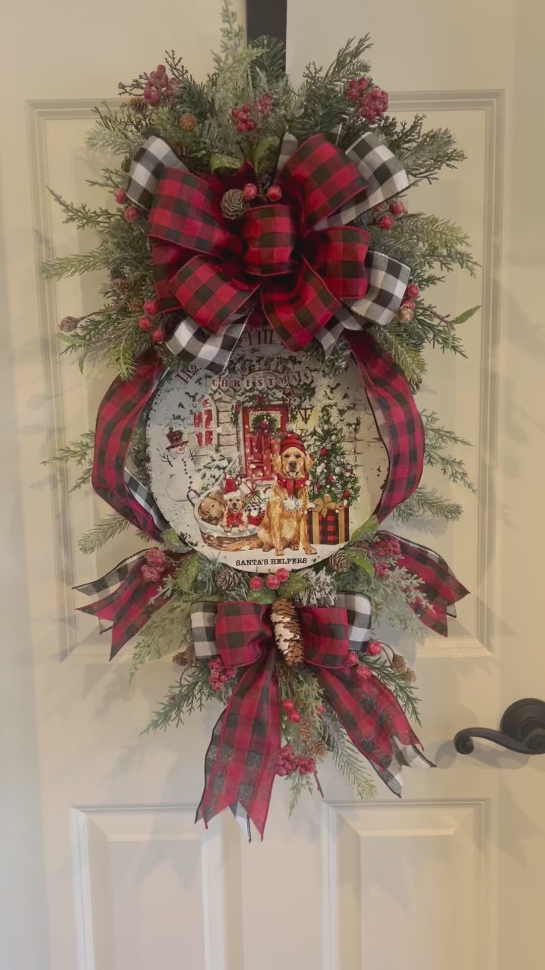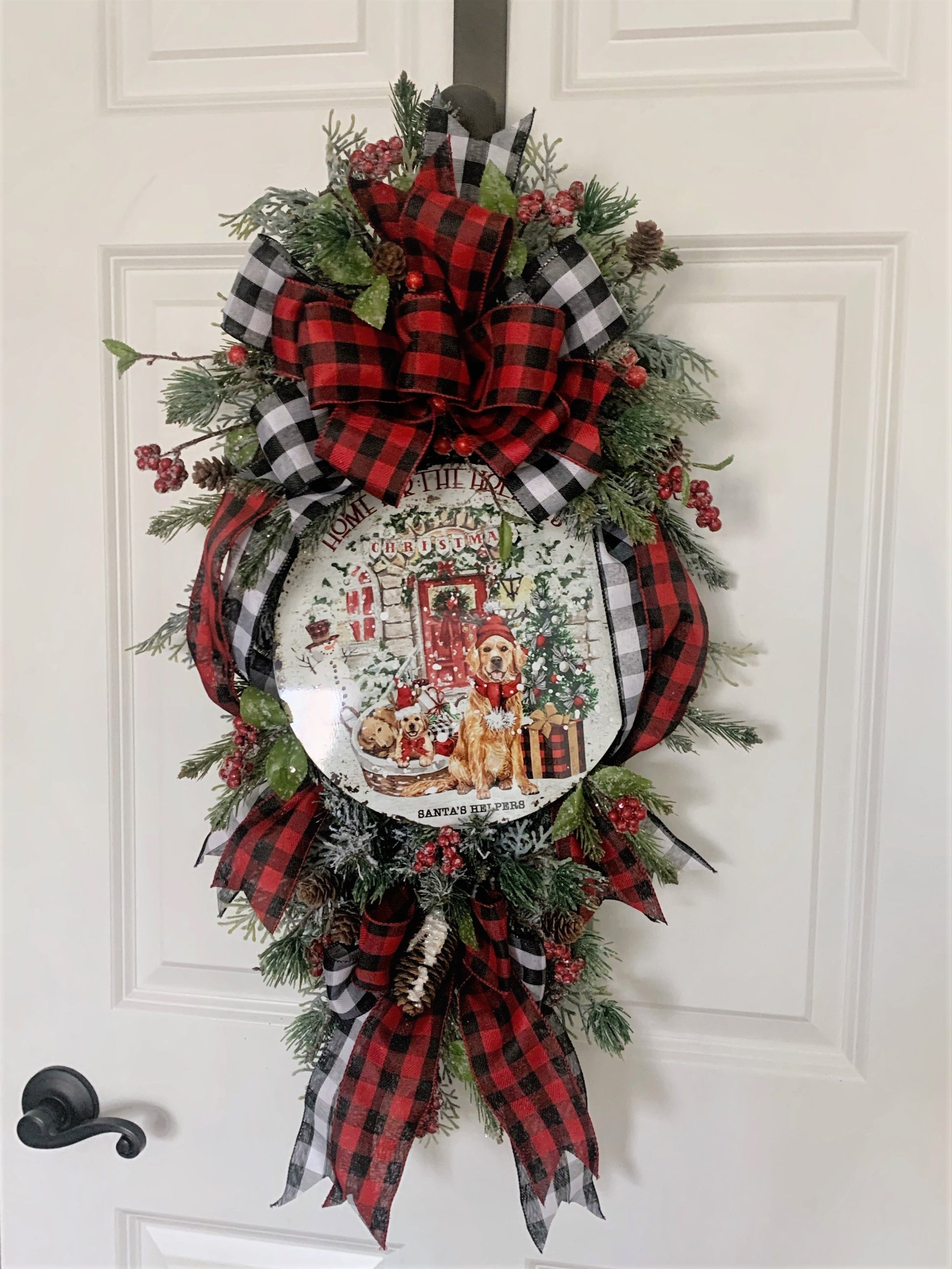 Buffalo Plaid Christmas Swag Wreath with Golden Retriever Dogs