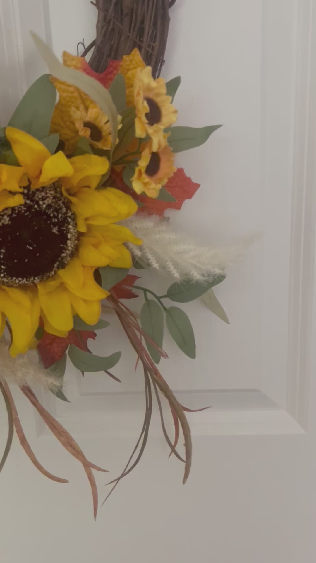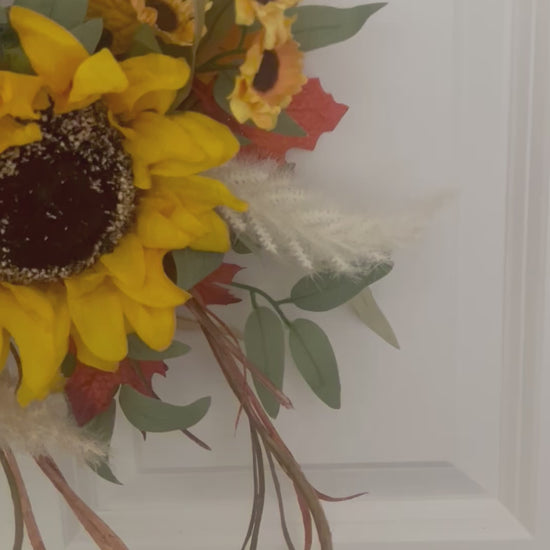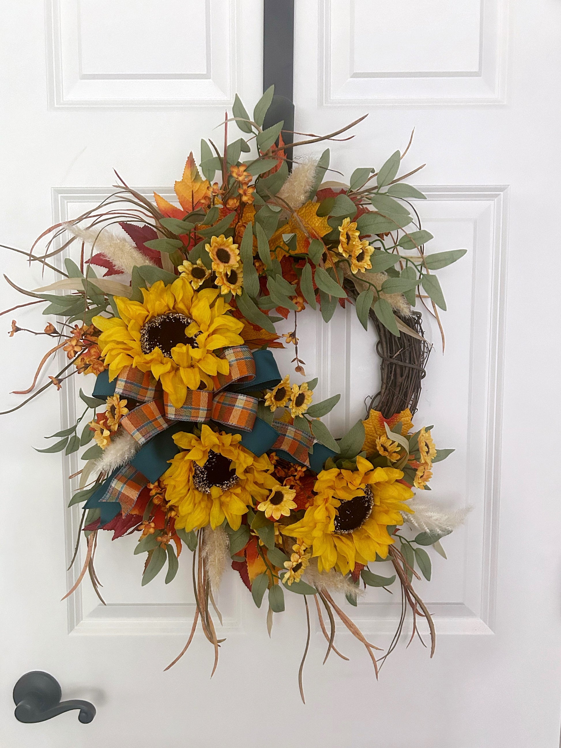 Celebrate fall in all of its glory with this stunning Sunflower Wreath. It is perfect to display late summer all the way through to Thanksgiving and will help you welcome friends and family with style.